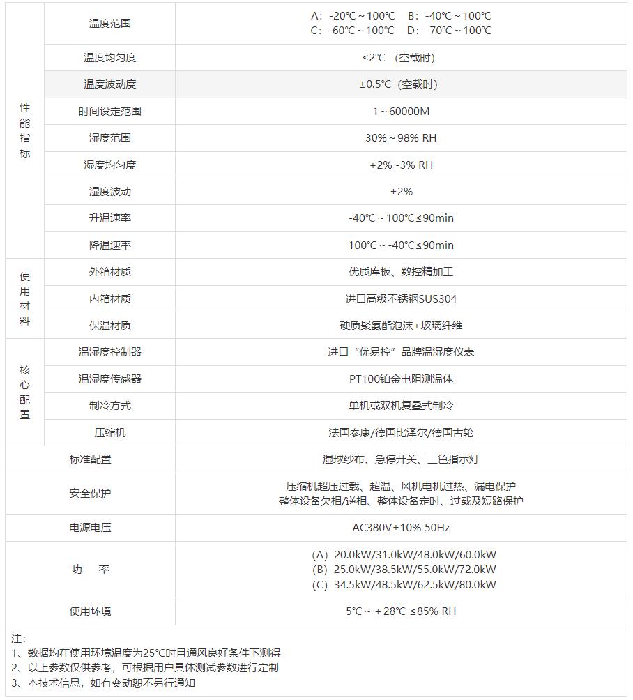 | 降溫速率 | 100℃~-40℃≤90min | ||||||