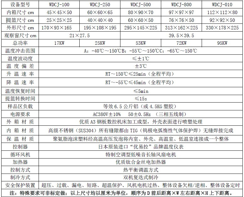 高低溫沖擊試驗箱主控制器采用進口日本“OYO”雙回路高精度液晶顯示觸摸按鍵溫度控制器。該控制器采用液晶顯示觸摸屏,可顯示設定參數、試驗曲線、運行時間、加熱器工作狀態,PID參數自整定功能。控制程序的編制采用人機對話方式,僅需設定溫度,就可實現制冷機自動運行功能。控制系統具備完善的檢測裝置能自動進行詳細的故障顯示。報警,配置485通訊接口及運行軟件。設定精度:溫度:0.1℃ 時間:Is用戶程序容量:10×99段。運行方式:程序運行,恒定運行。獨立超溫保護儀表。設備工作時間累計計時器。低溫區、高溫區轉換時間小于等于15秒。 溫度恢復時間小于等于5分鐘。