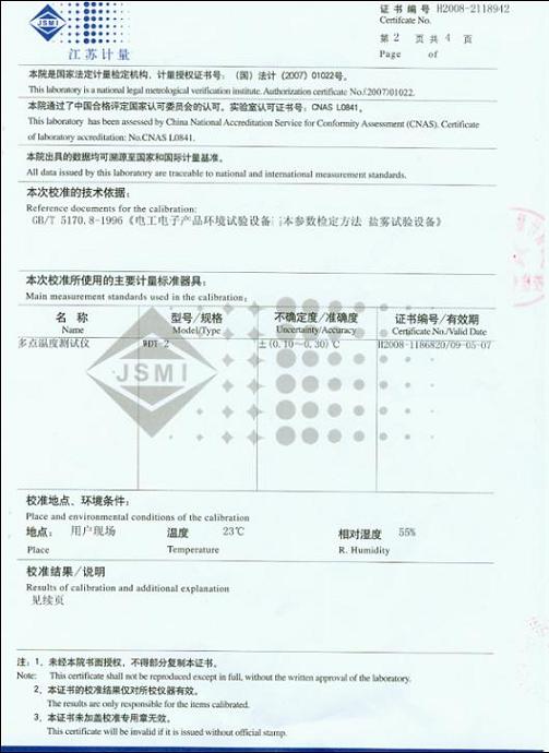 鹽霧腐蝕試驗箱校準證書-江蘇計量院-廣西計量院
