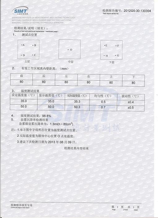 鹽霧腐蝕試驗箱檢測報告-上海計量院-勝利油田