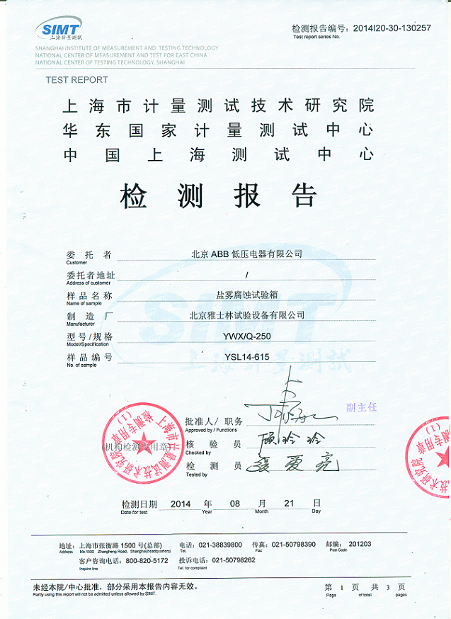 環(huán)境試驗設(shè)備行業(yè)判斷產(chǎn)品質(zhì)量是否合格,通常由國家第三方權(quán)威檢測機構(gòu)出具相關(guān)檢測報告,雅士林儀器標(biāo)準(zhǔn)化圖紙接線、焊接、三十五項嚴(yán)格檢驗流程,所選配件均為世界知名品牌,正品行貨,一萬兩千多家行業(yè)用戶共同見證,質(zhì)量有保證。公司所出品的環(huán)境試驗設(shè)備均能滿足國標(biāo)、軍標(biāo)、國際標(biāo)準(zhǔn)等多項檢測標(biāo)準(zhǔn),中國計量院、北京計量院、上海計量院等多家第三方權(quán)威檢測機構(gòu)榮譽認(rèn)證。